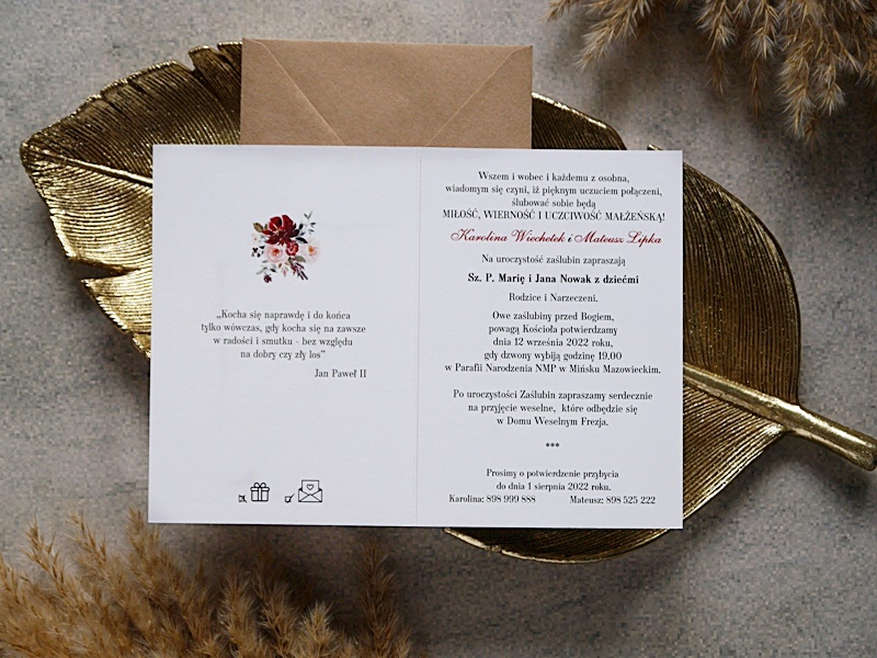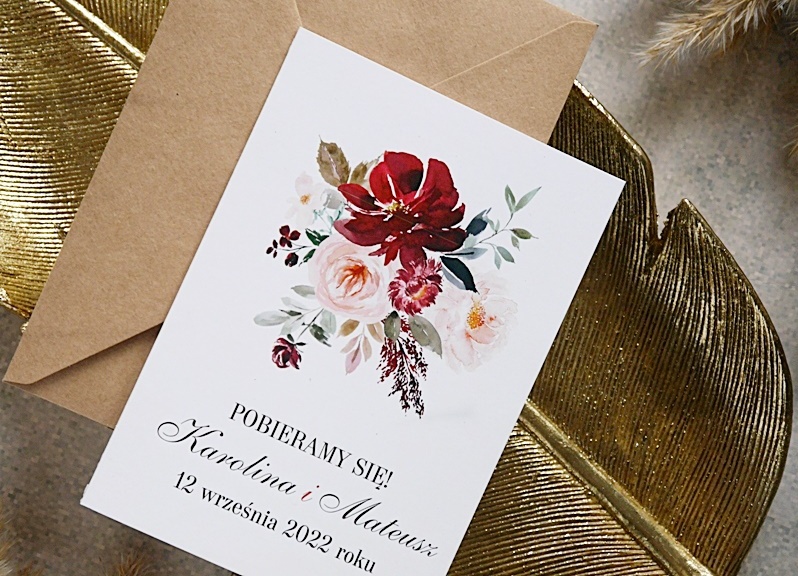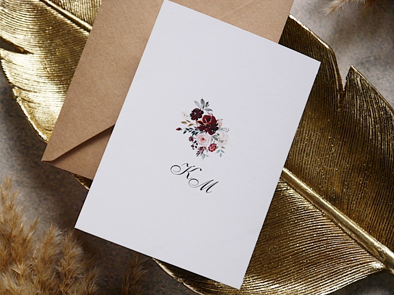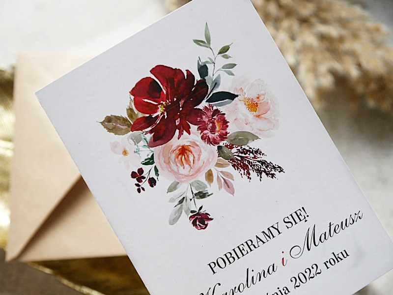 Zaproszenie na ślub MISTRAL 1 kwiaty marsala bordowe