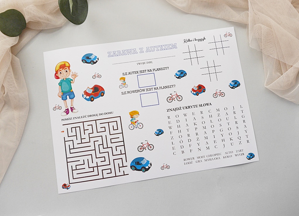 Atrakcja na urodziny Autko - karty pracy/zabawy dla uczestników