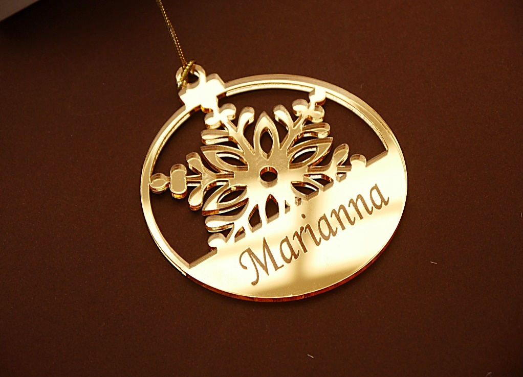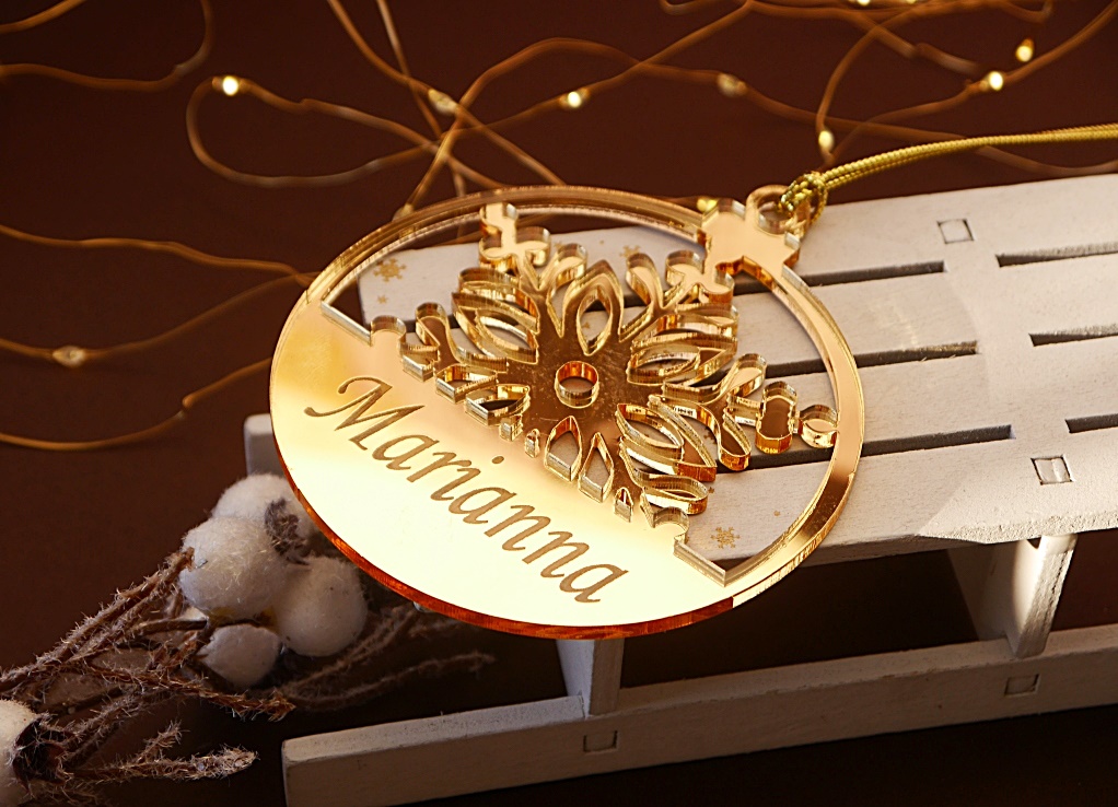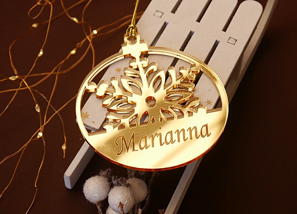 Bombka z imieniem złota śnieżynka Boże Narodzenie święta srebrna