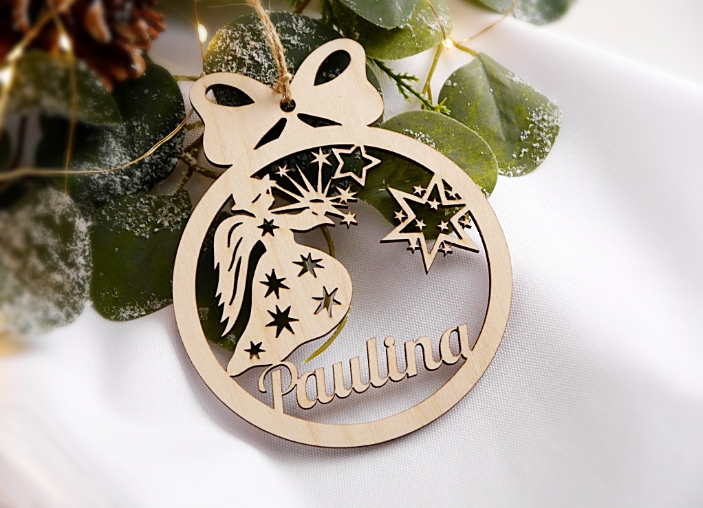 DREWNIANA BOMBKA z imieniem na choinkę święta prezent upominek