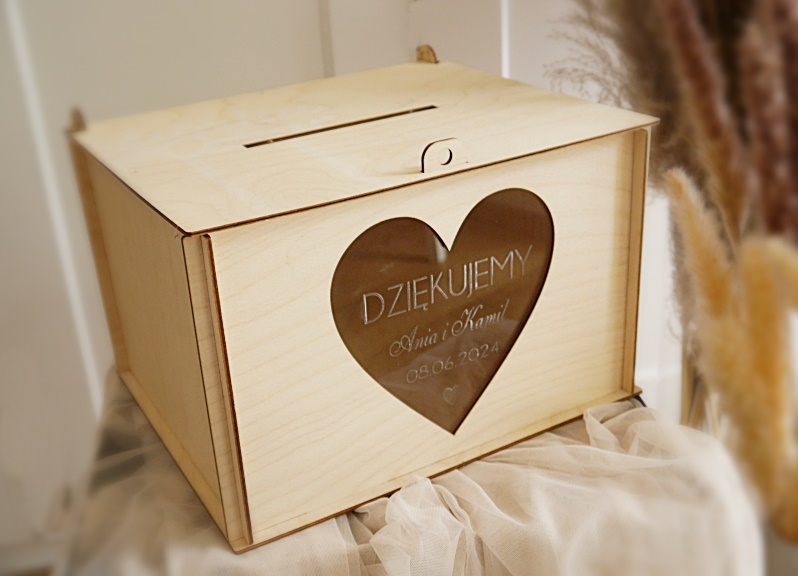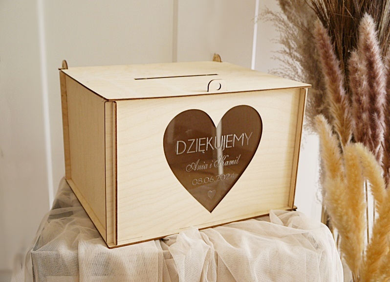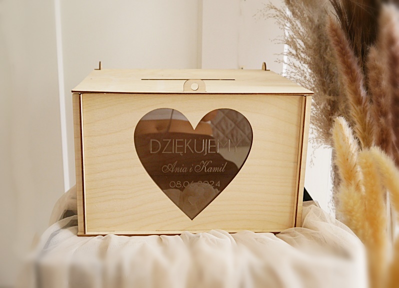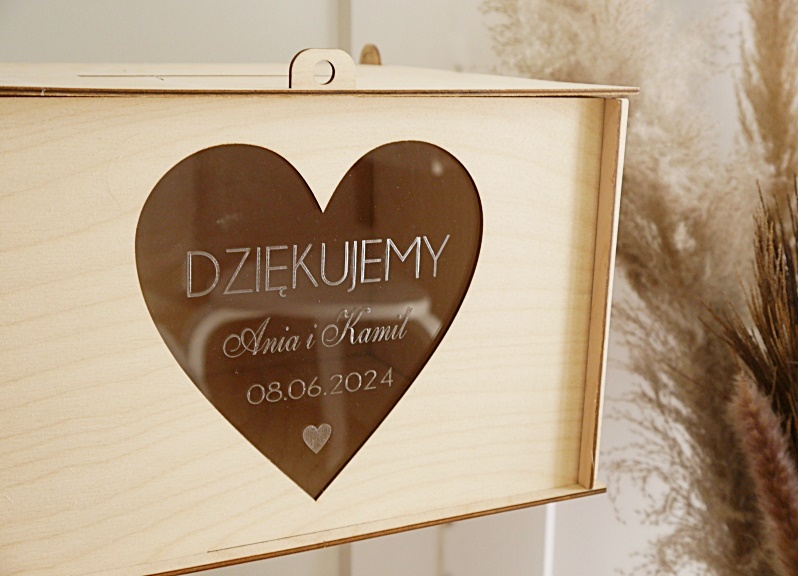 Na skrzynce: DZIĘKUJEMY+ imiona + data + serduszko.