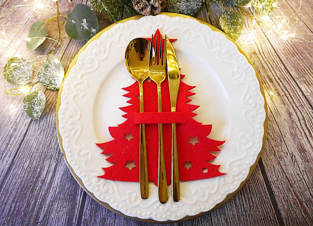 Zestaw świątecznych podkładek na sztućce CHOINKA to elegancka dekoracja stołu podczas świąt. Stanowi piękną i elegancką ozdobę twojego stołu.
