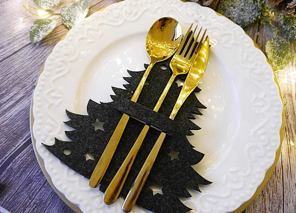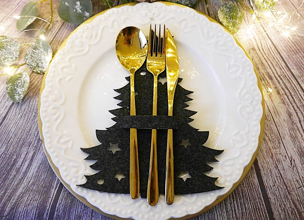 Zestaw świątecznych podkładek na sztućce CHOINKA to elegancka dekoracja stołu podczas świąt. Stanowi piękną i elegancką ozdobę twojego stołu.