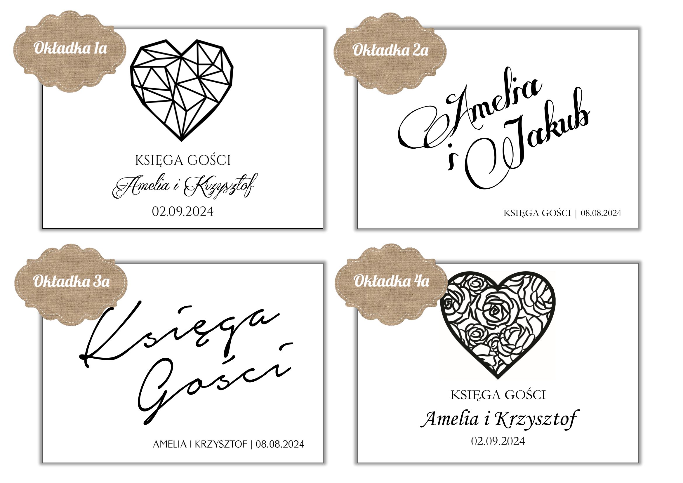 - strona powitalna, do wyboru 4 wzory lub własny tekst + twoje imiona i data