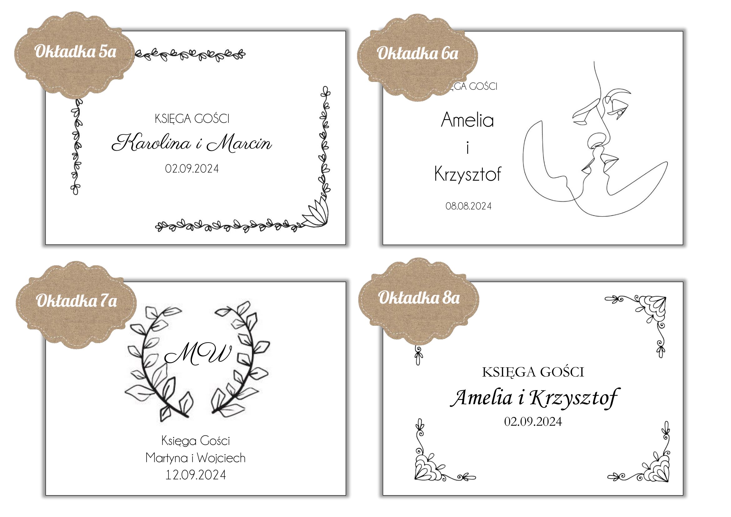 Zaskocz gości weselnych Księgą Gości z twoimi danymi. Księga Gości w postaci ankiet to nietypowa forma życzeń od twoich gości. Podczas jej wypełniania na pewno nie zabraknie zabawy, atrakcji dla gości i was samych. Naturalna oprawa ze złotym grzbietem tworzy piękną całość. Dostępne różne motywy okładki oraz ankiet.