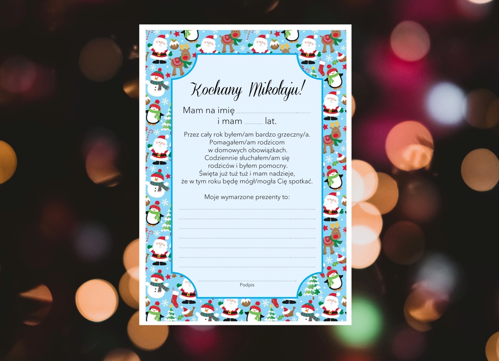 Spraw swojemu dziecku oraz sobie radość i napiszcie wspólnie LIST DO ŚWIĘTEGO MIKOŁAJA. Można go wypisać własnymi danymi.