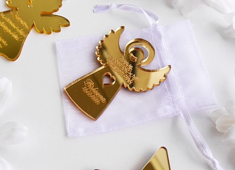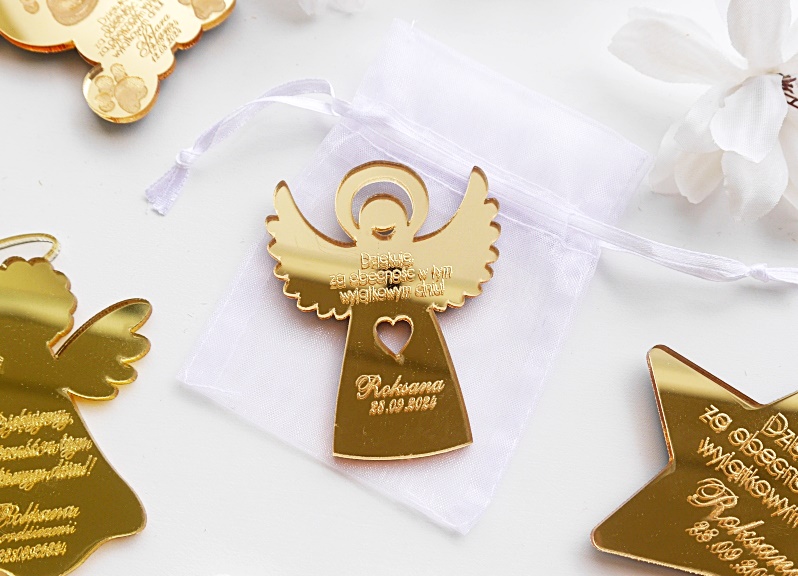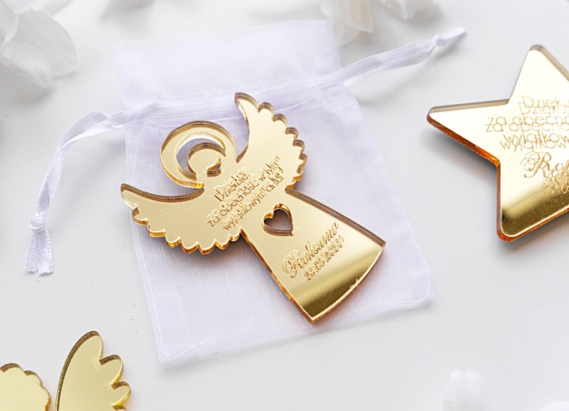 Cena dotyczy 1 sztuki magnesu wraz z białym woreczkiem. Tekst jak na zdjęciach + grawer dowolnego imienia oraz daty. Idealne na podziękowanie z okazji chrztu/roczku.