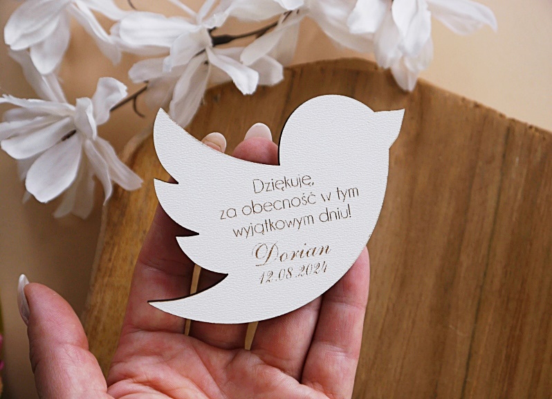 Wspaniała pamiątka na długie lata i piękna dekoracja. Możesz wręczyć go gościom lub położyć przy każdym talerzyku, tworząc tym samym dekorację twojego stołu.