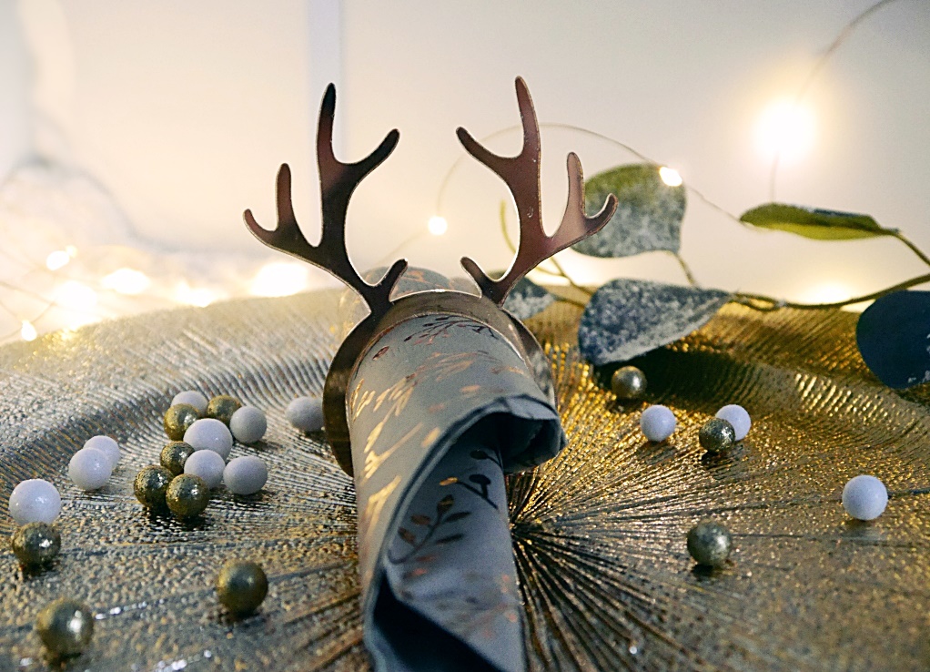 Obrączki na serwetki wykonane z plexi, przygotowane w kształcie reniferów to piękna propozycja na dekorację świątecznego stołu i pomysł na składanie serwetek.
