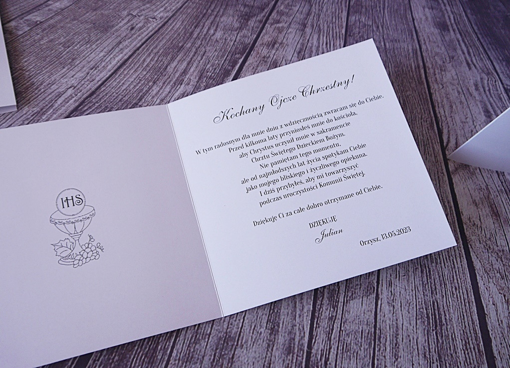Podziękowanie Ojciec CHRZESTNY pierwsza komunia kartka z tekstem