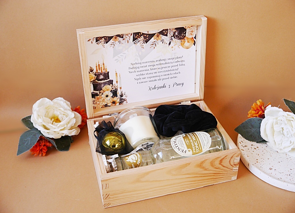 Skrzynka prezentowa dla kobiety na dowolne urodziny - na 30 40 50 60 18 i każde inne:)