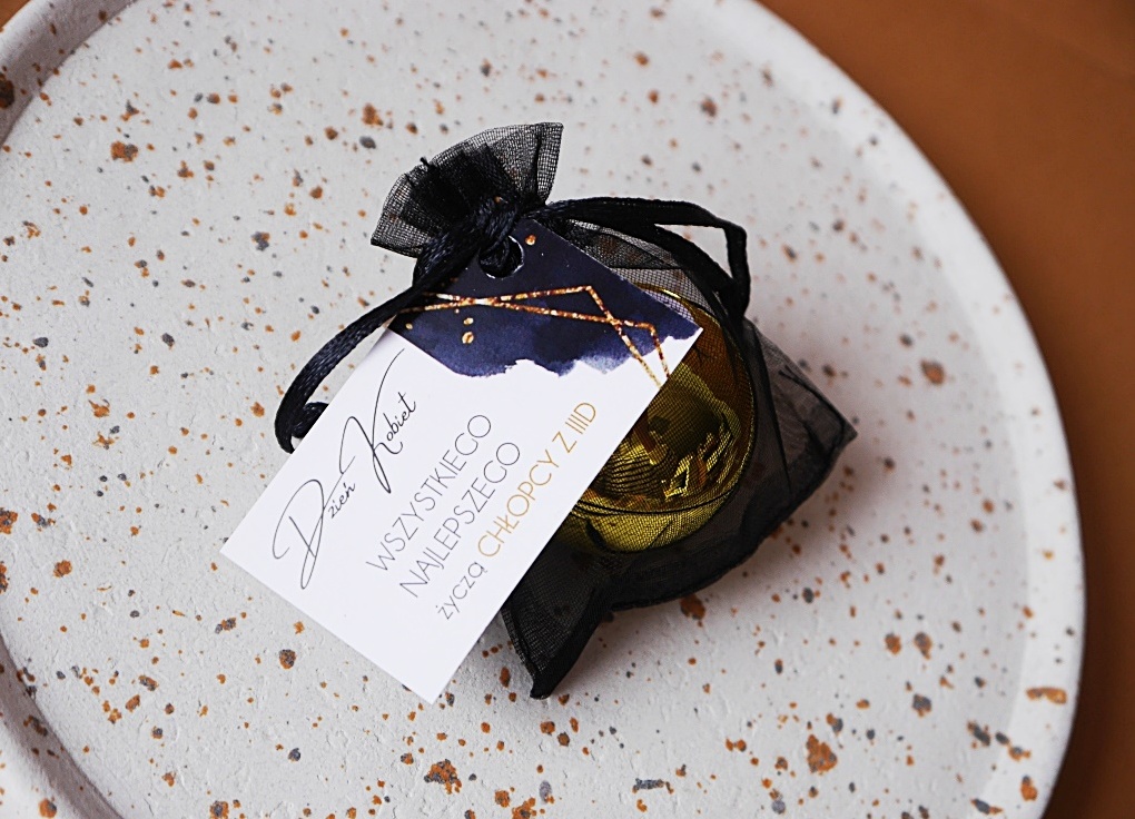 PREZENT NA DZIEŃ KOBIET w szkole, przedszkolu oraz pracy/błyszczyki w woreczkach ze spersonalizowaną etykietą.