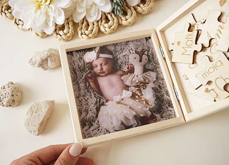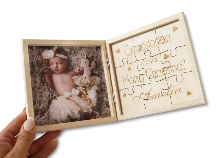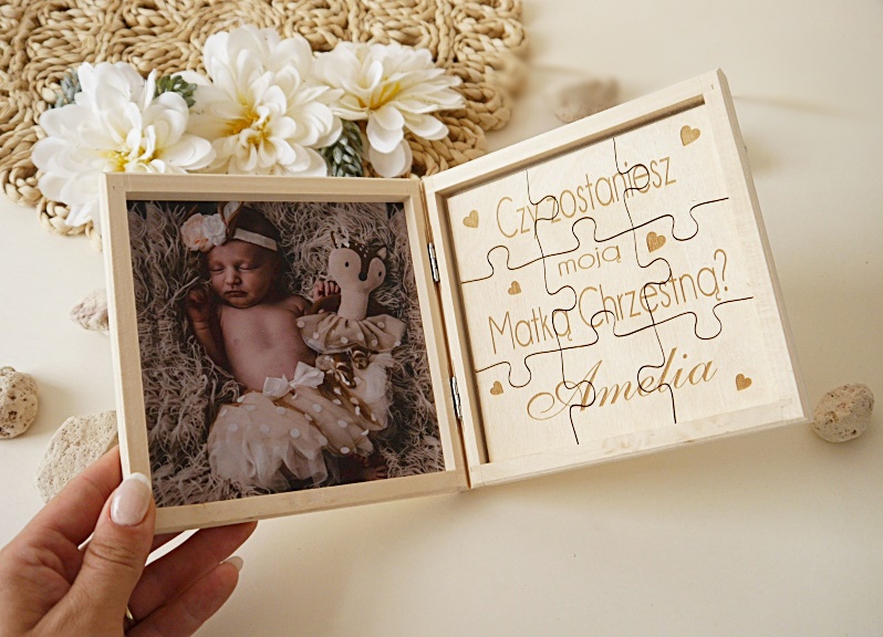 FOTO skrzyneczka ze zdjęciem i puzzlami- prośba o bycie matką chrzestną