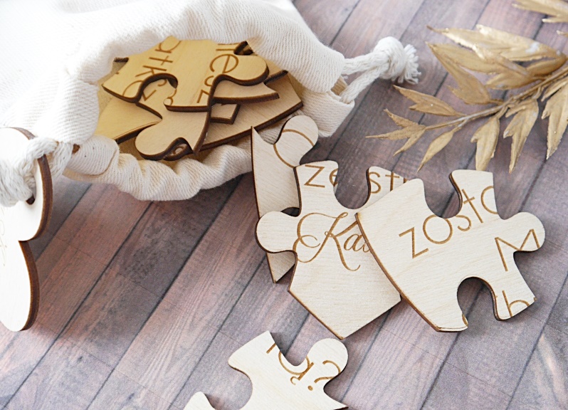 W cenie zestaw: woreczek z serduszkiem oraz puzzle.