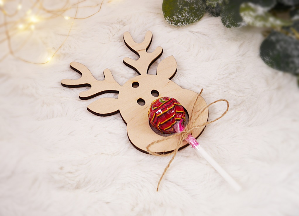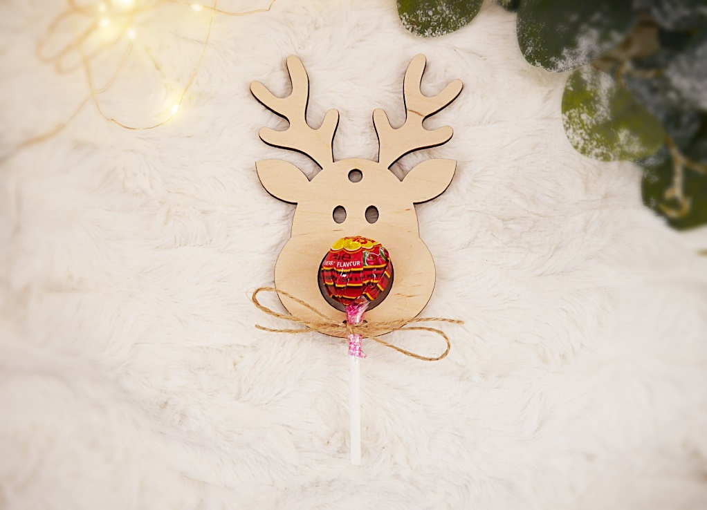 Świetnie sprawdzi się w szkole lub w przedszkolu. Oferta dotyczy drewnianego renifera z miejsce na lizak wraz ze sznureczkiem do przymocowania twojego lizaka.