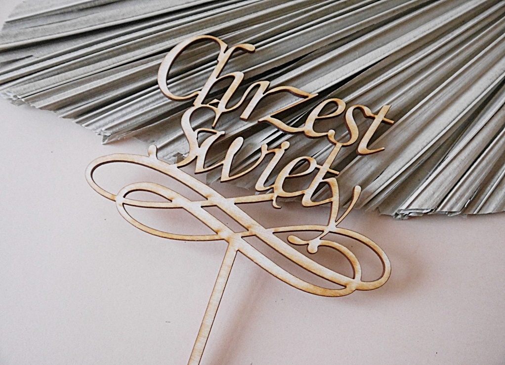 Topper na tort drewniany CHRZEST ŚWIĘTY