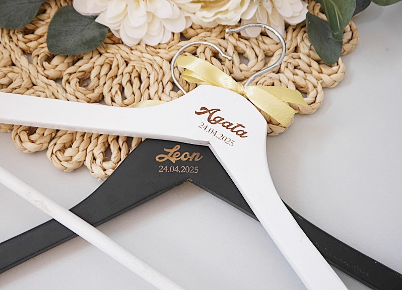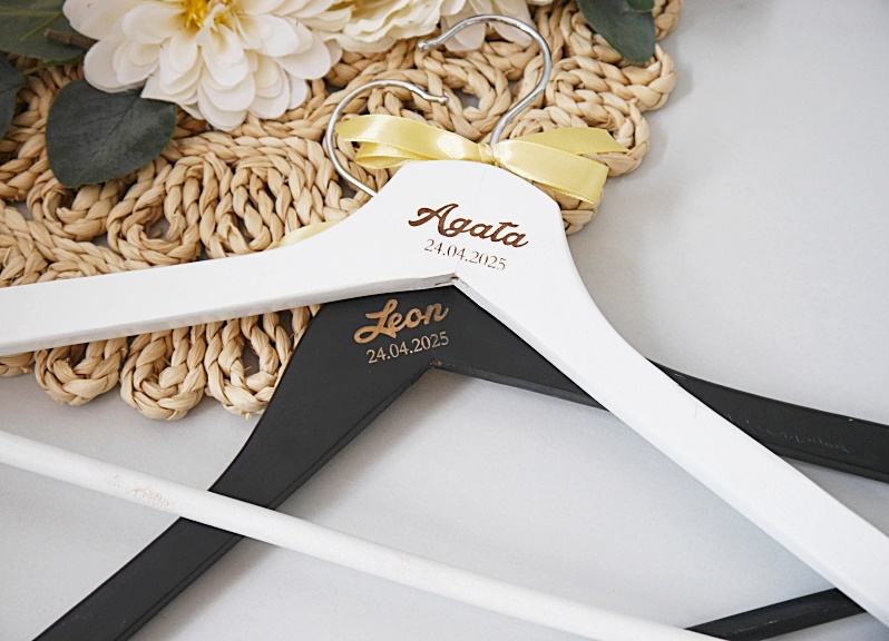 Wieszaki na ślub z imionami i datą grawer wesele dekoracje