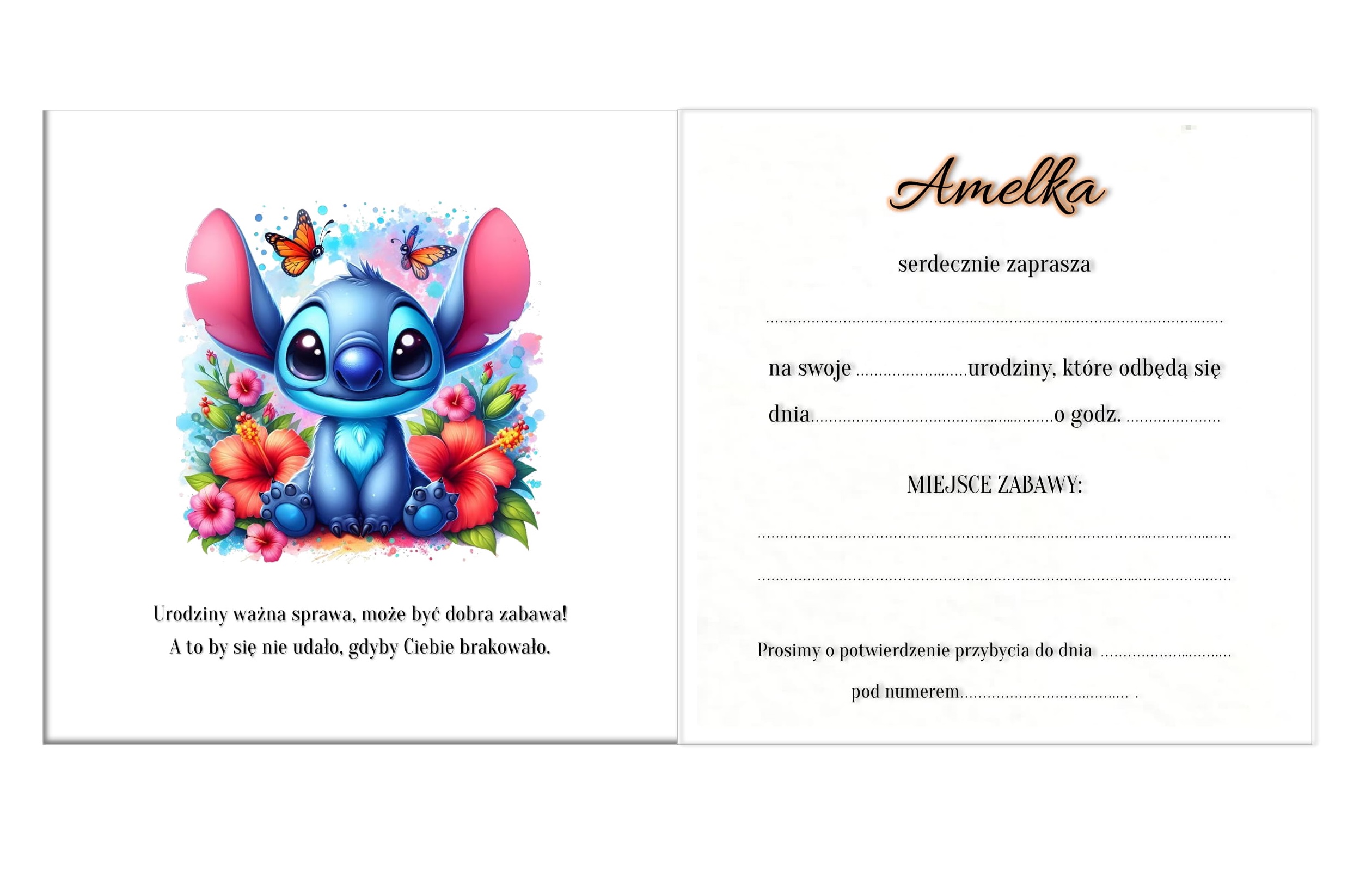 Oferta dotyczy 10 sztuk zaproszeń na urodziny - STITCH