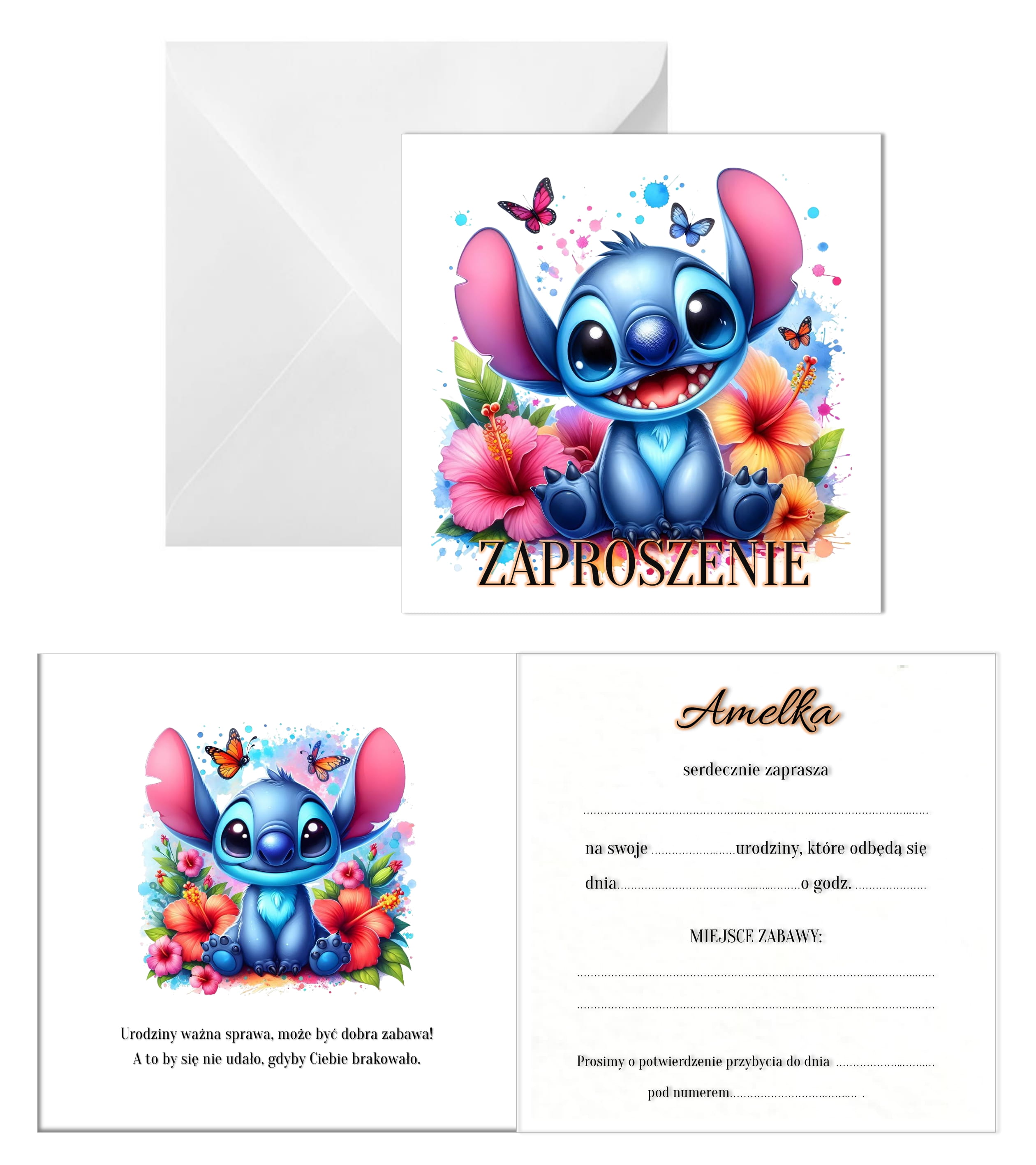 Zaproszenia zaproszenie na urodziny 10 sztuk IMIĘ Stitch STICH koperty