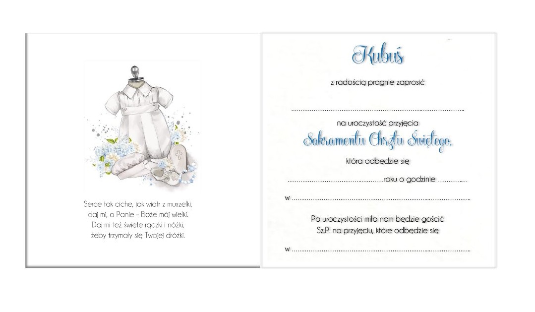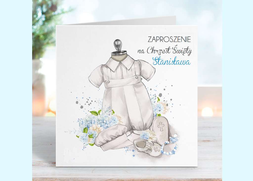 Zaproszenie na chrzest Święty do wypisania TWOJE IMIĘ chłopiec