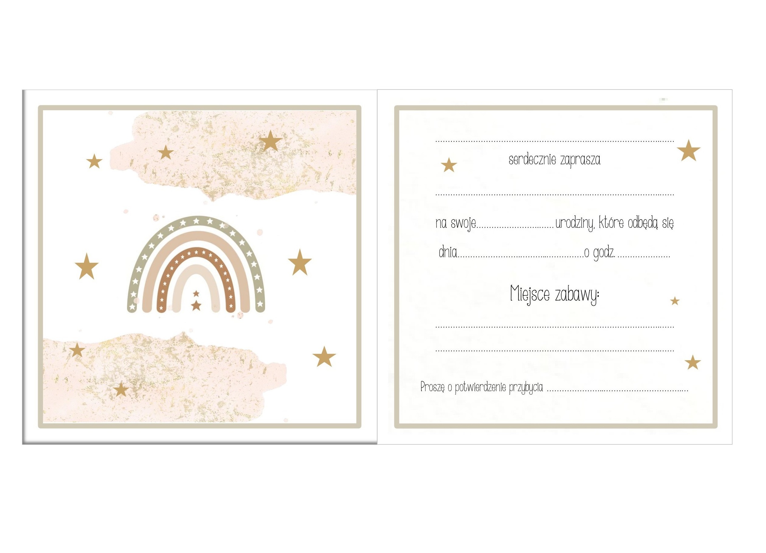 Zaproszenie na urodziny roczek TĘCZA 10 sztuk koperty