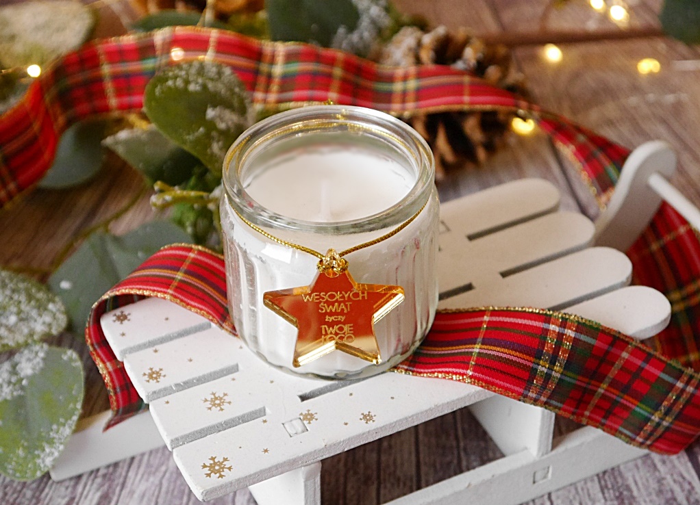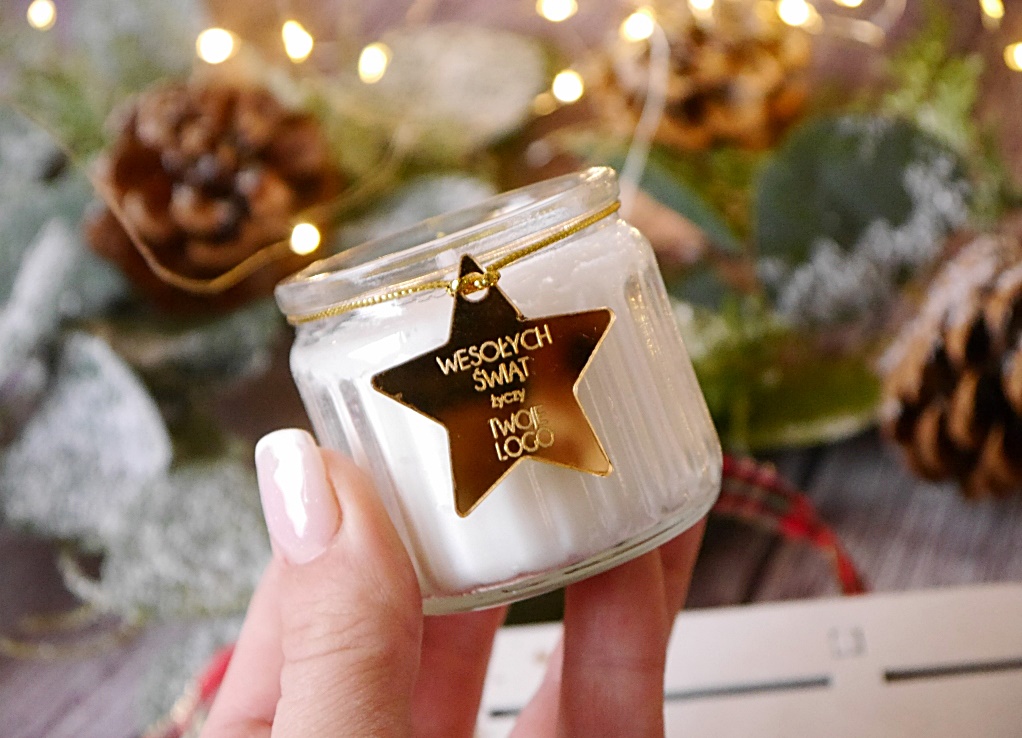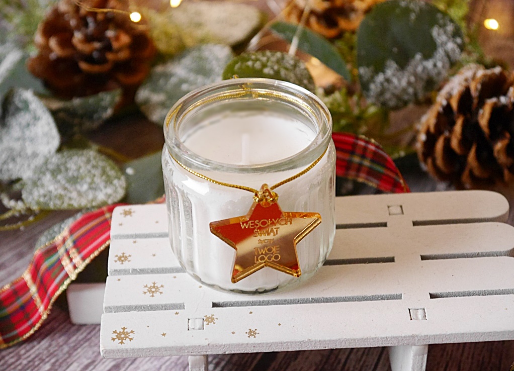 Prezent świąteczny firmowy Boże Narodzenie świeczka przywieszka z logo