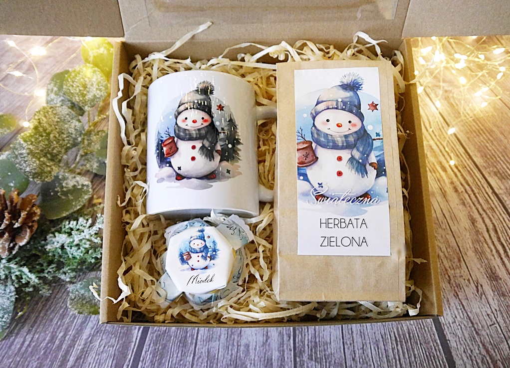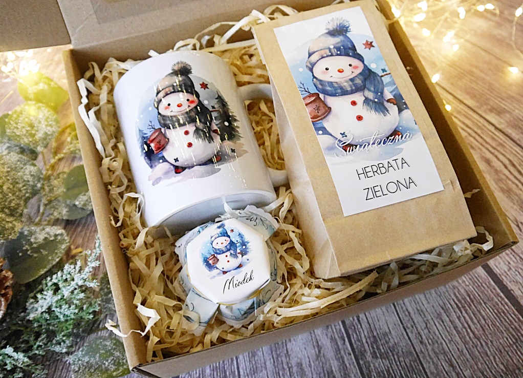 Prezent świąteczny firmowy dla firm box miód herbata kubek mikołaj