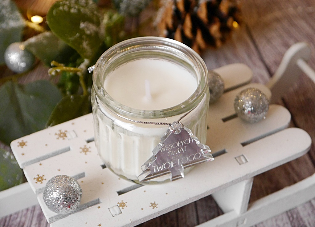 Świeca z ozdobną przywieszką, na której jest twoje logo lub podpis. Czas palenia świecy 12 godzin. Świeca w szklanym słoiczku.