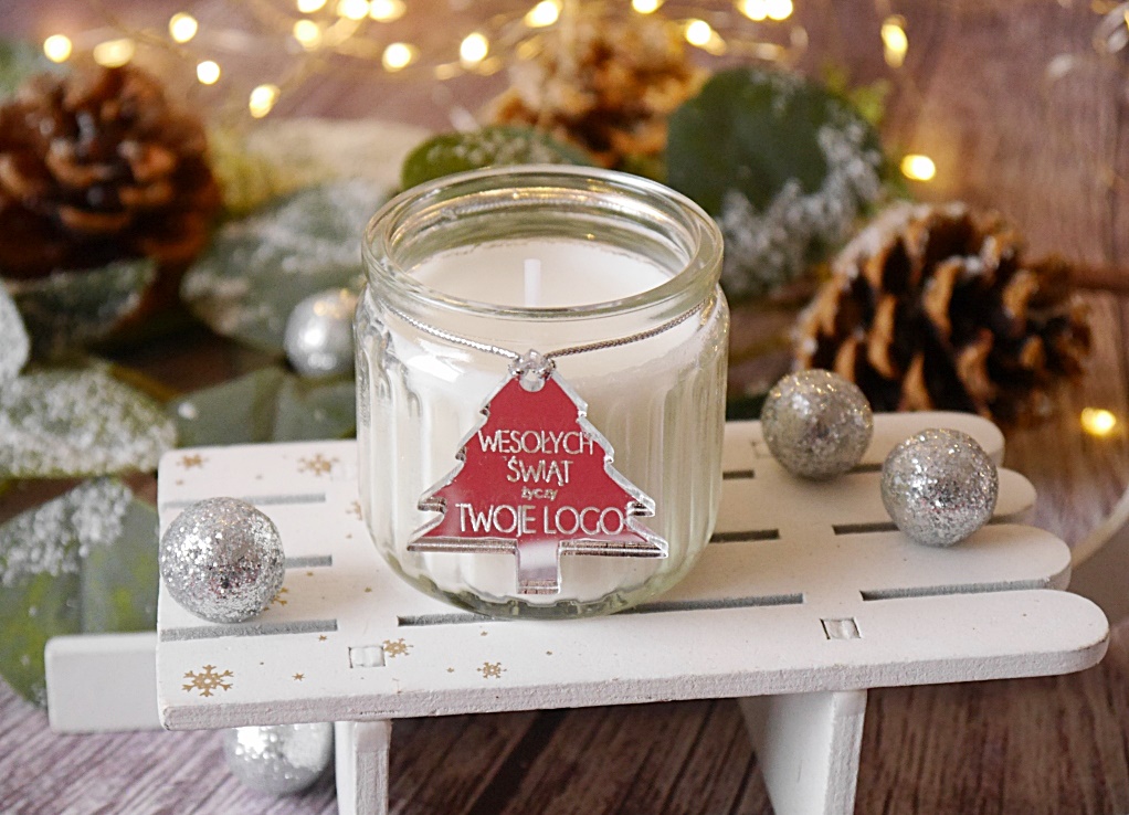 Upominek świąteczny firmowy Boże Narodzenie świeczka przywieszka z logo