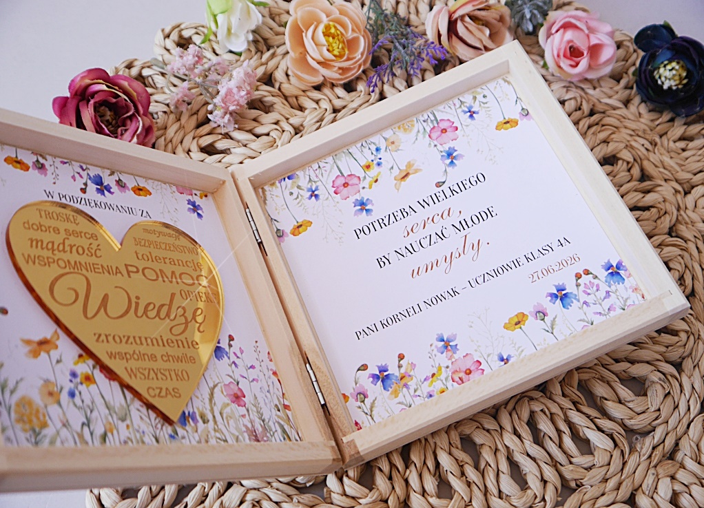 ⭐Szkatułka z podziękowaniem nauczycielce, nauczycielowi, wychowawcy z okazji zakończenia roku szkolnego lub Dnia Nauczyciela z twoim podpisem - dla kogo oraz od kogo jest prezent.