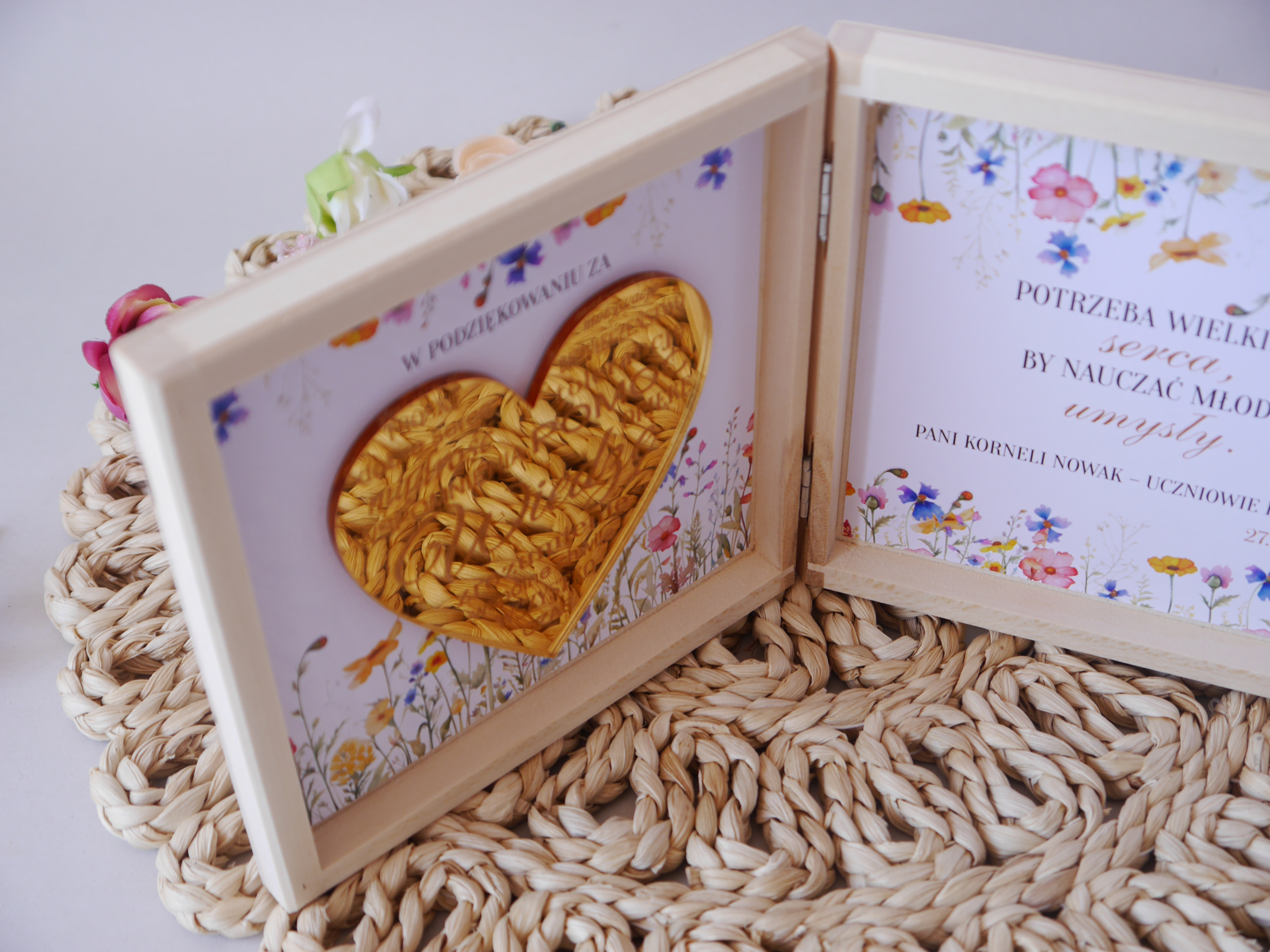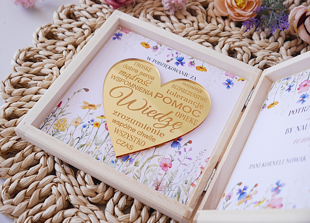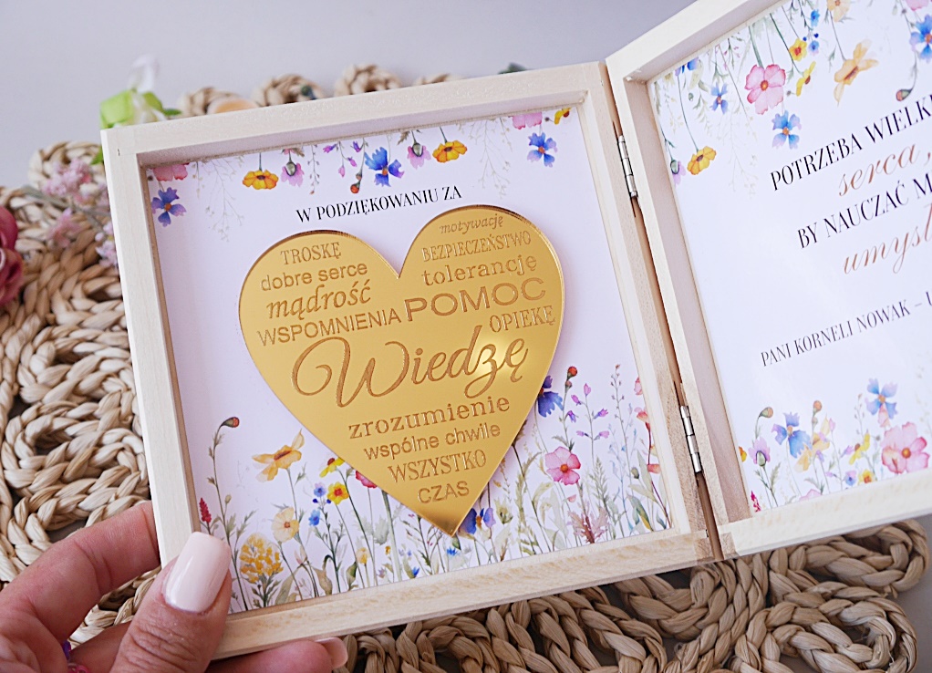 PODZIĘKOWANIE DLA NAUCZYCIELA ZAKOŃCZENIE ROKU złote serce PREZENT pudełko