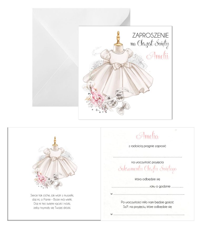 ZAPROSZENIE na chrzest DLA DZIEWCZYNKI - Wzór CH12B