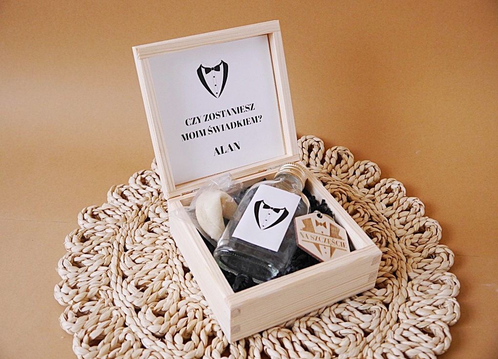 Zaskocz swojego świadka pięknym prezentem. Bogaty zestaw w atrakcyjnej cenie. Box wyróżnia personalizacja, jest specjalnie zapakowany dla wybranej osoby. Wieko oraz środek stworzony specjalnie dla ciebie.