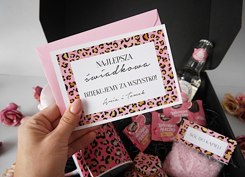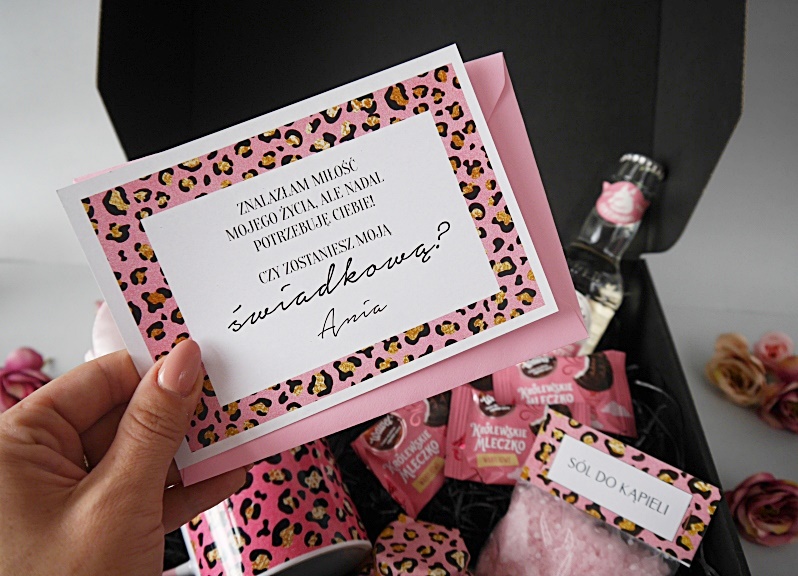 Zaskocz swoją świadkową pięknym prezentem. Bogaty zestaw w atrakcyjnej cenie. Box wyróżnia personalizacja, jest specjalnie zapakowany dla wybranej osoby. Ślub to wyjątkowy czas, dlatego zdecyduj się na niestandardowe rozwiązanie. Box jest gotowy do wręczenia. Wybierze czy potrzebujesz prośby czy podziękowania:)